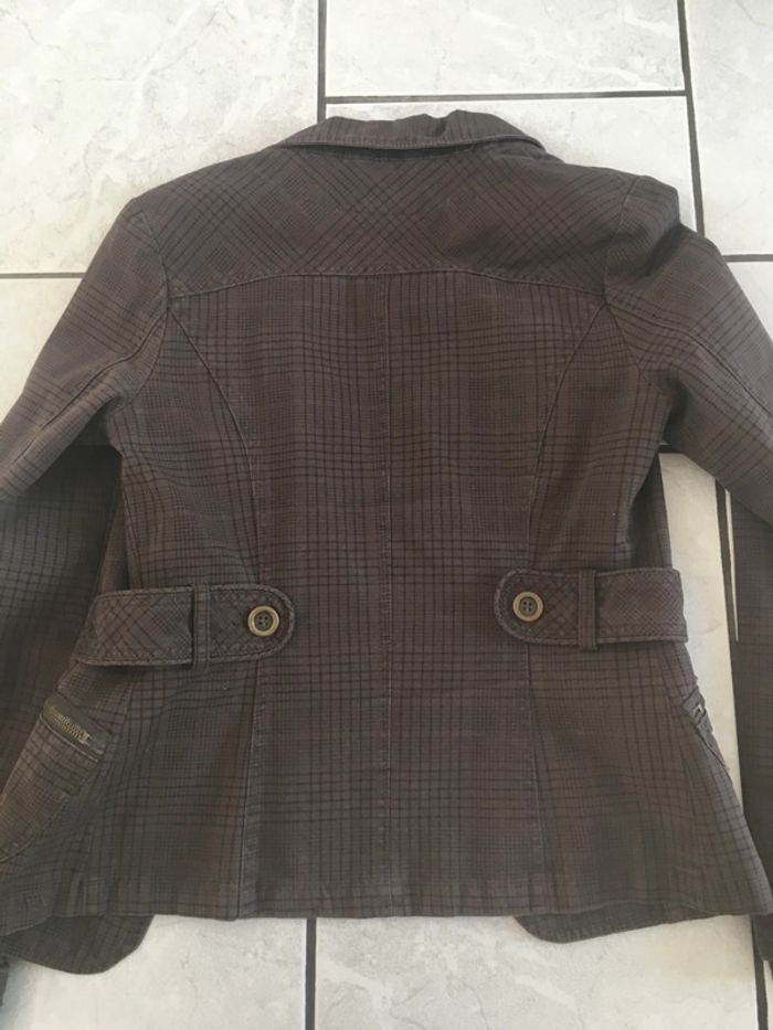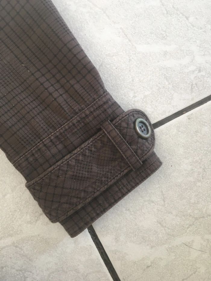 Veste mi saison carreaux marron taille S en bon état car petite tache qui ne se voit pas une fois fermé voir dernière photo
