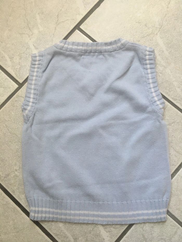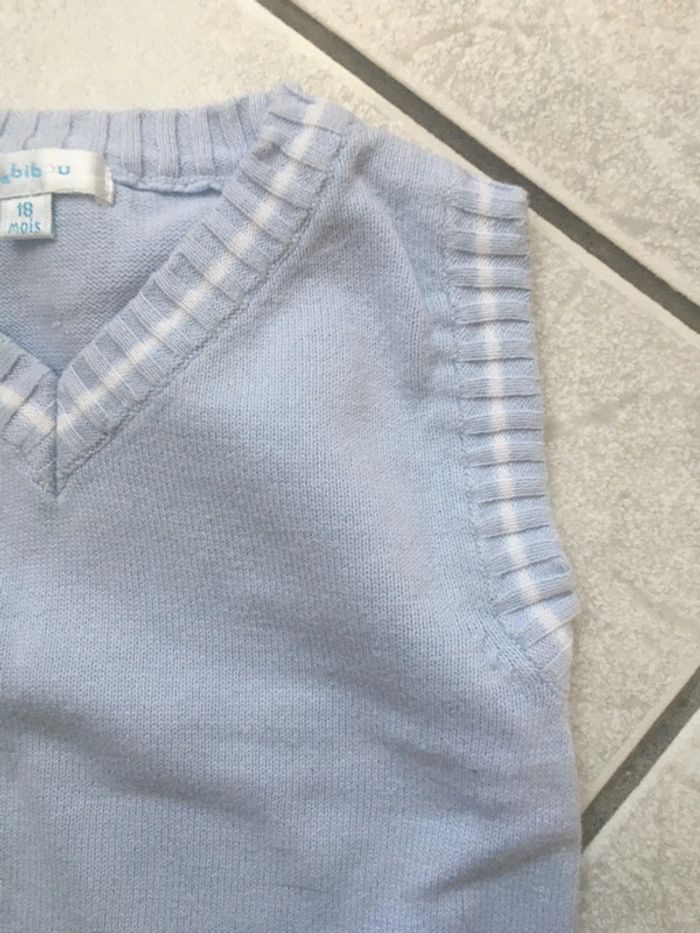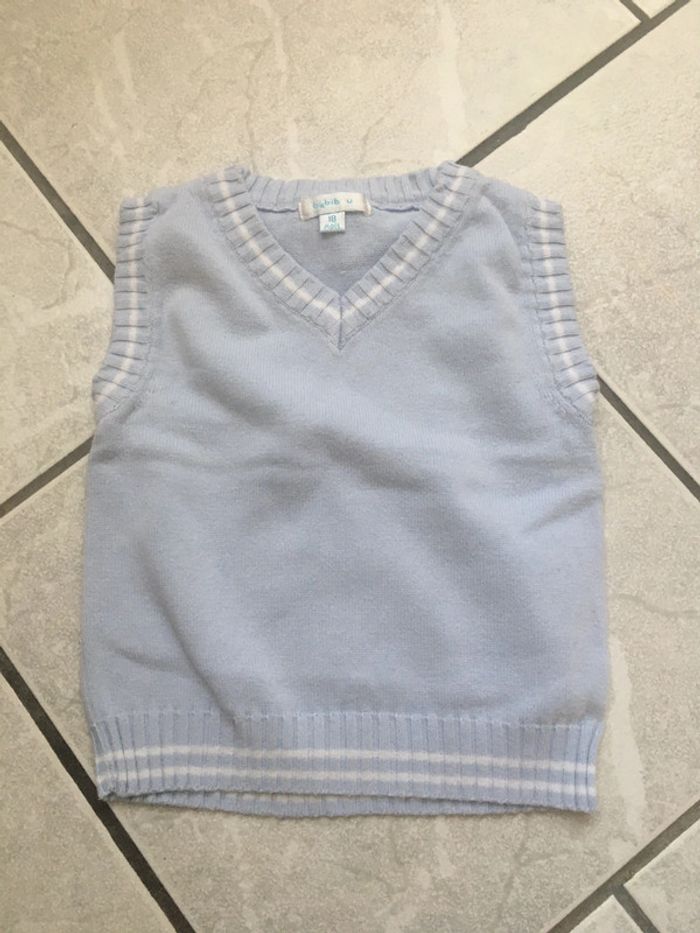 Pull sans manche bleu clair en très bon état taille 18 mois