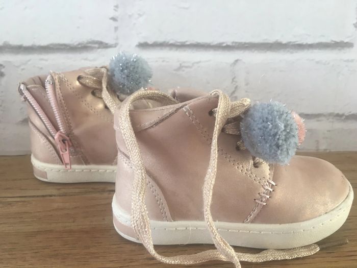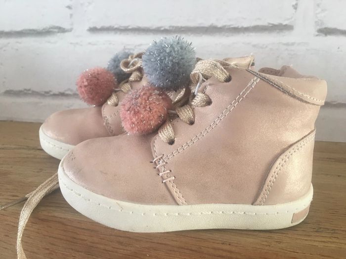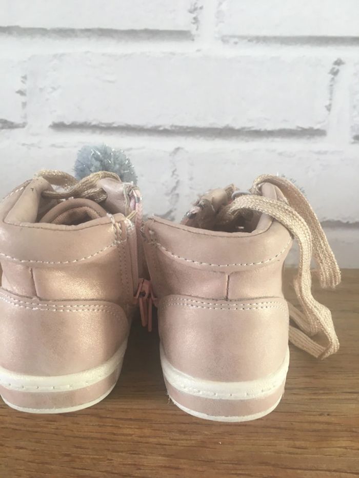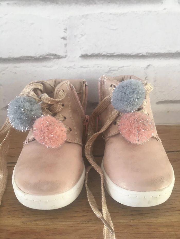 Chaussures rose taille 21 avec pompons en bon état