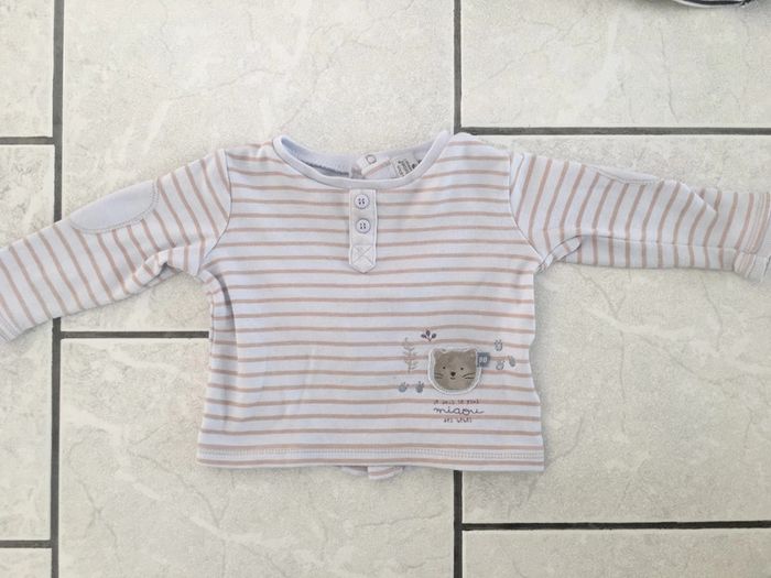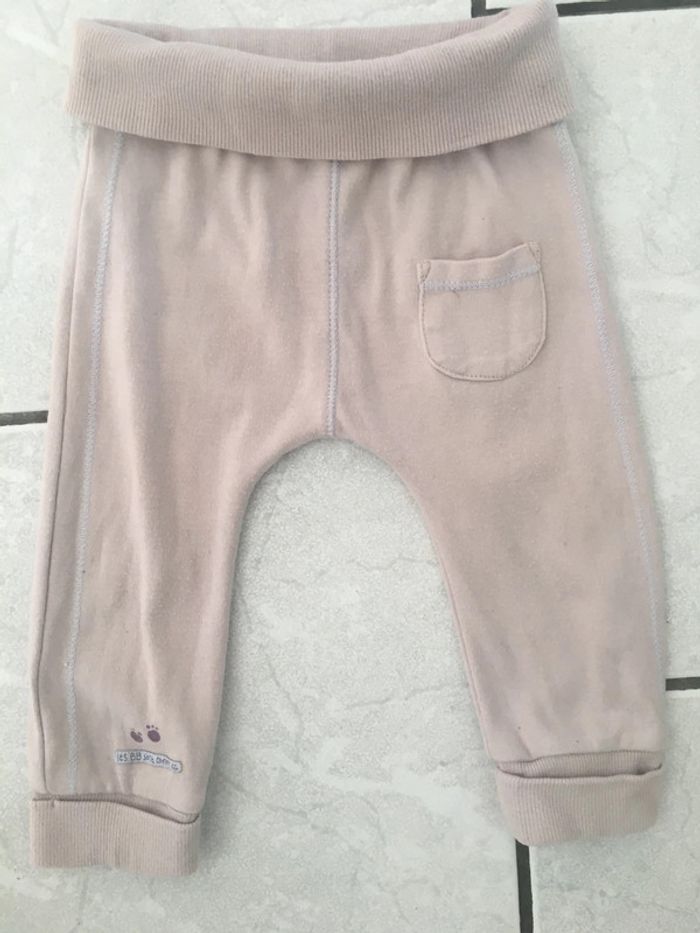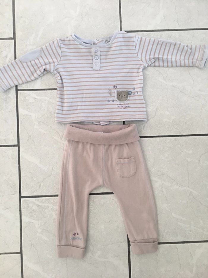 jogging léger composé d’un pantalon beige et d’un sweat rayé bleu clair et beige. en très bon état de marque les bébés sont comme ça taille 6 mois
