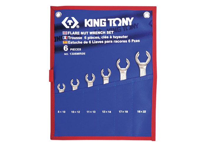 Trousse de clés à tuyauter métriques - 6 pièces Poids (kg) : 0.90 Clés à tuyauter 6x6 pans Comprend: 1930: clés à tuyauter 6 pans de 8 x 10 , 10 x 12 , 11 x 13 , 12x14 , 17 x 19 , 19 x 22 Marque KINGTONY Reference 1306MRN Garantie à vie NEUF