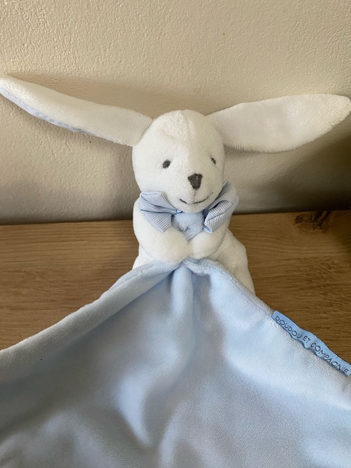 Doudou lapin blanc mouchoir bleu noeud papillon doudou et compagnie - photo numéro 1