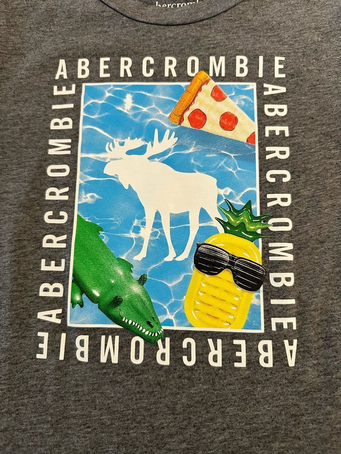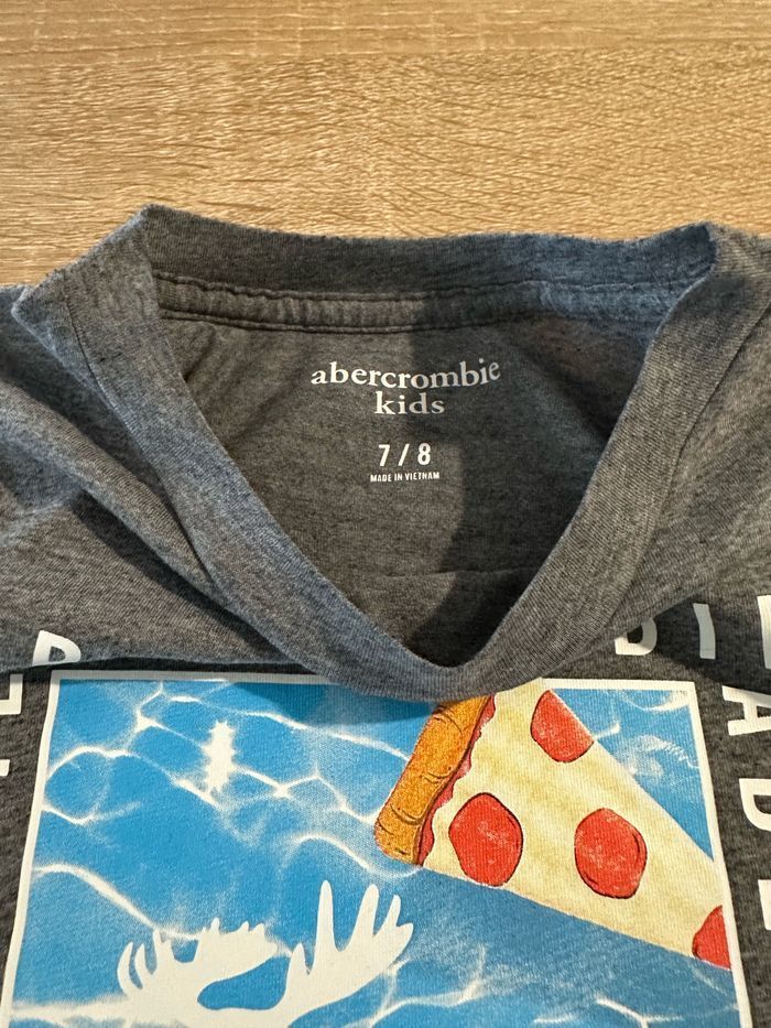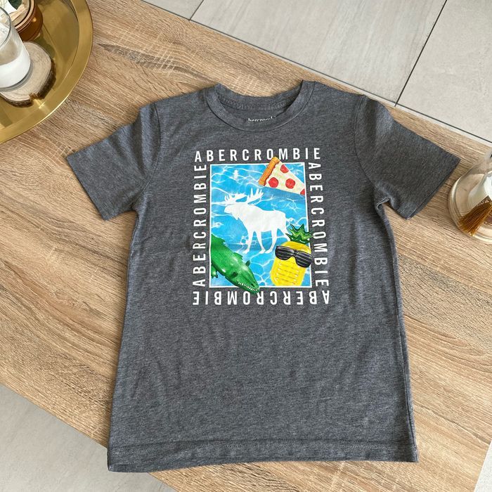 T shirt gris avec motif imprimé sur le devant taille 7/8 ans Abercrombie & Fitch en très bon état