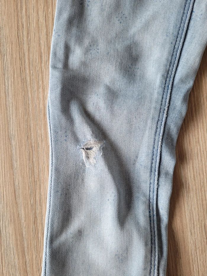 En bon état, effet délavé et troué. Juste une légère tache au genou gauche voir photo. Taille ajustable #presscillia5ans