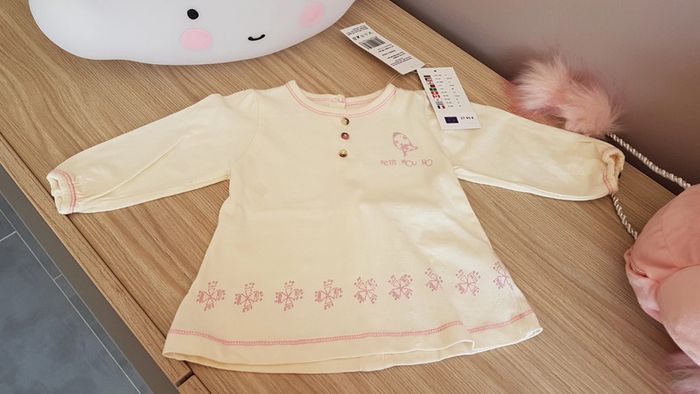 Robe neuve avec étiquette. J'ai vu 2 tâches malgré qu'elle soit neuve avec étiquette voir les 2 dernières photo... Je n osé pas la laver.. D ou le petit prix