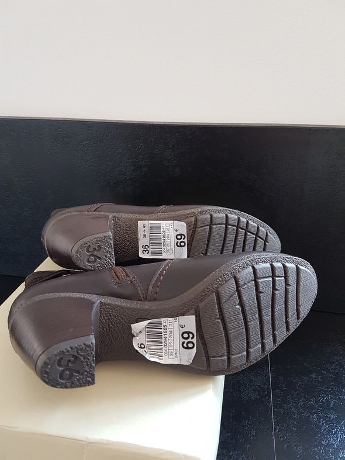 bottines neuves marron taille 36 dessus cuir. prix d'achat: 69 euros. prix de vente: 33 euros. cause: vide mon dressing, manque de place .