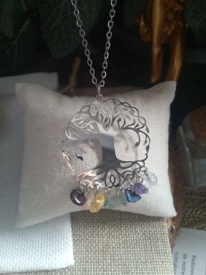 Collier arbre de vie et pierres naturelles - photo numéro 1