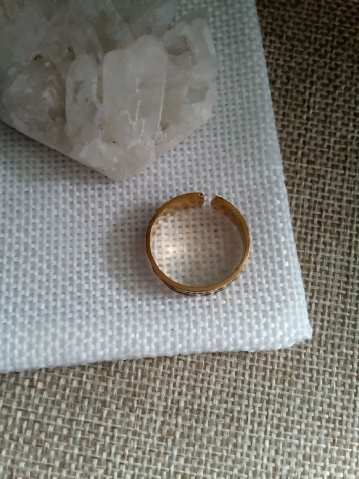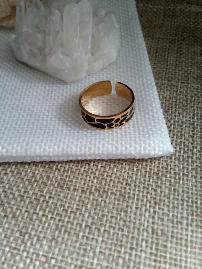 Bague en acier inoxydable doré et noir - photo numéro 1