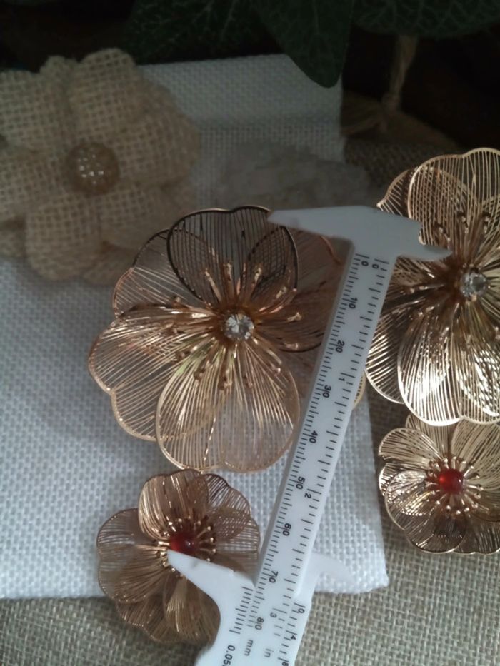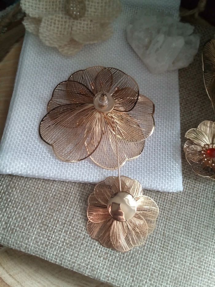 Boucles d'oreilles bohèmes fleurs avec pierres naturelles d'agate rouge - photo numéro 3