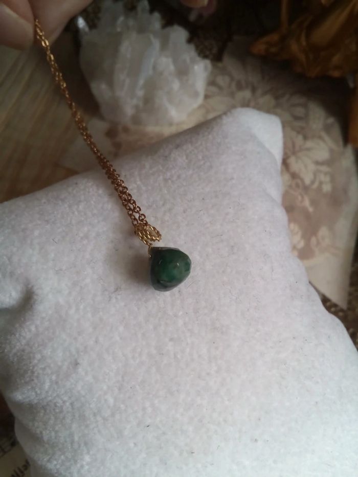 Chaîne en acier inoxydable plaqué doré 45 cm Pierre naturelle d'émeraude taillée à facettes en forme de figue Si vous êtes intéressée par un lot : 🤍 Frais de port offert pour 2 articles 🤍 A partir de 3 articles je fais 10% sur le lot (sans déduction des frais de port) Vous trouverez aussi pierres naturelles semi précieuses d'améthyste jade labradorite kyanite ambre citrine pierre de lune onix libellule mortelle Adèle oracle magie wicca bohème fée boho cadeau bola royaumes de feu scarabé pendule sorcellerie ésotérisme dogna mode amulette bonheur ethnique santé guérison prière bible talisman huile essentielle tarot obsidienne trèfle zircon or