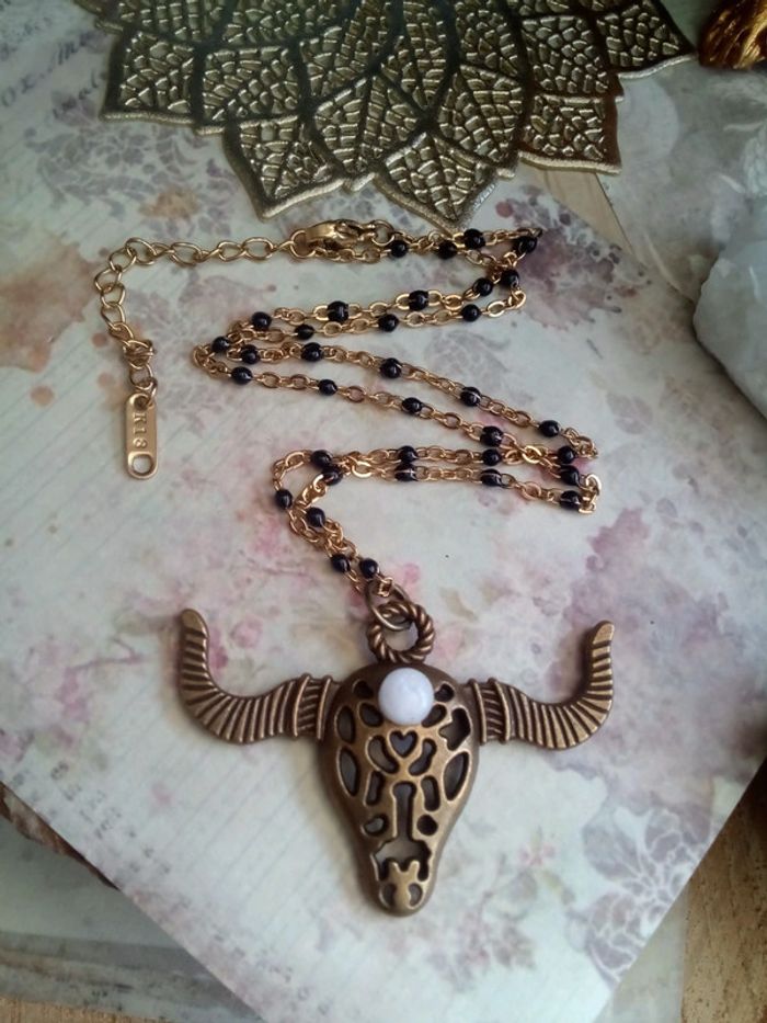 Collier taureau pierre de Lune naturelle - photo numéro 3