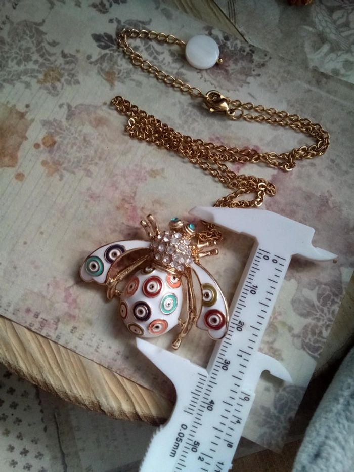 Collier scarabé blanc avec perle de n'a'c'r'e - photo numéro 5