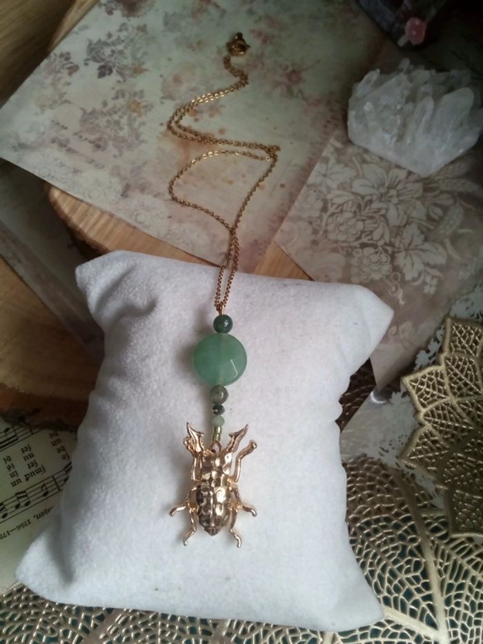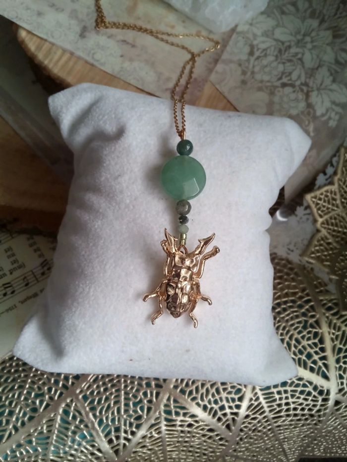 Collier pierre aventurine naturelle et scarabé doré - photo numéro 1