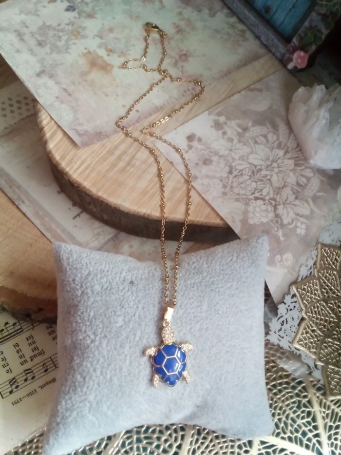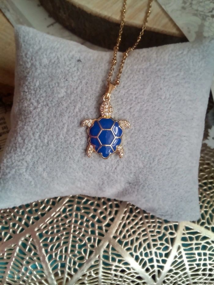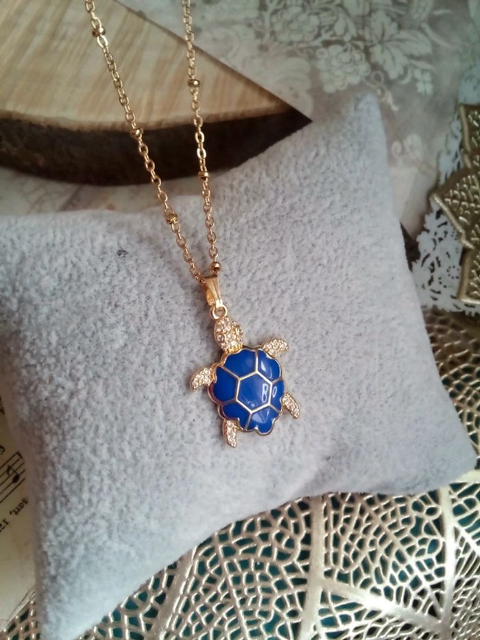 Collier tortue bleue et dorée - photo numéro 1