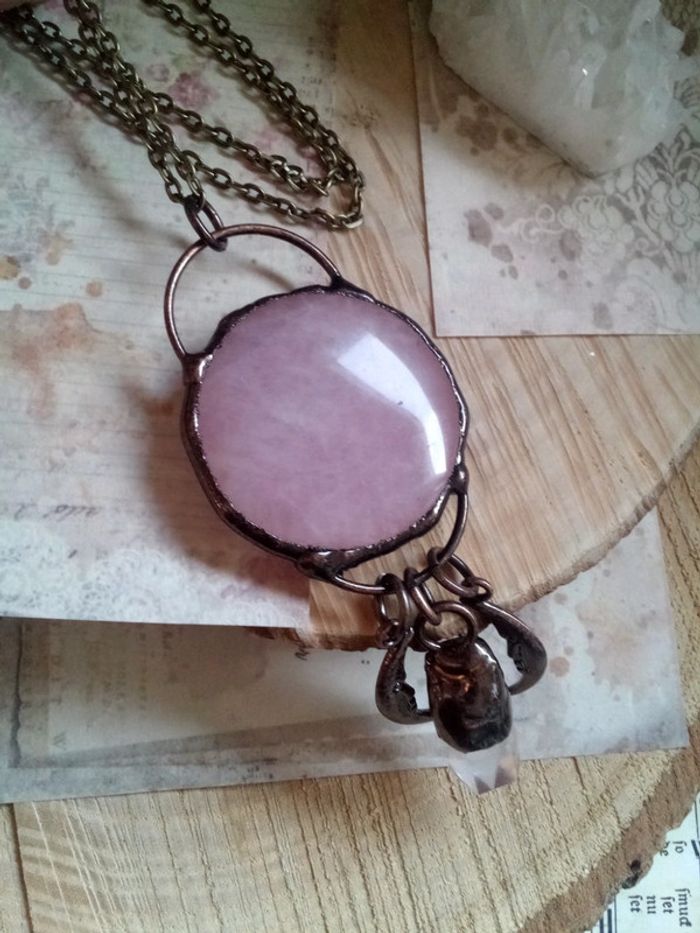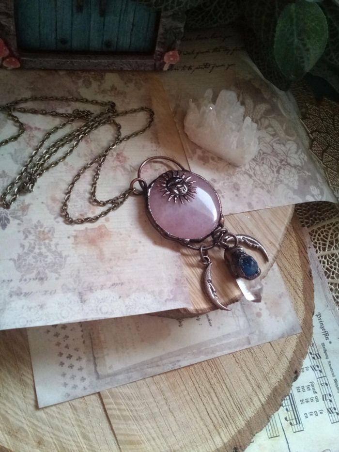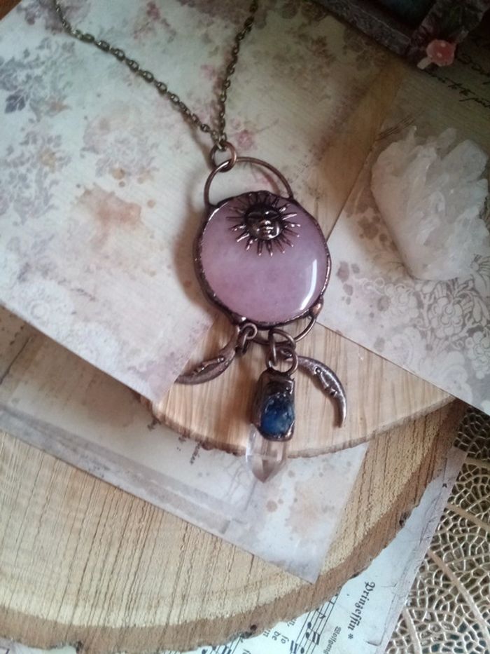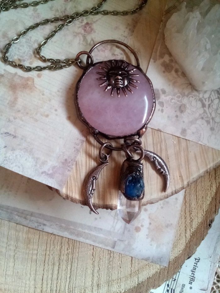 Sautoir en pierre de quartz rose cristal de roche et lapis lazuli - photo numéro 4