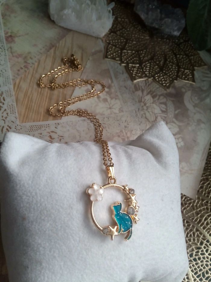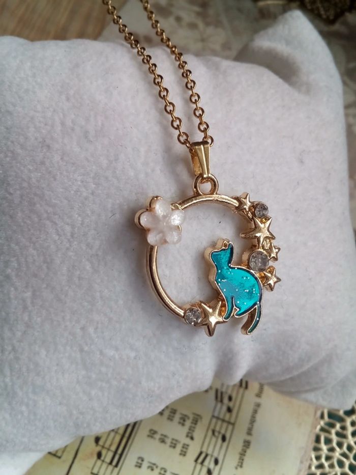 Collier chat lumineux et fleur blanche - photo numéro 2