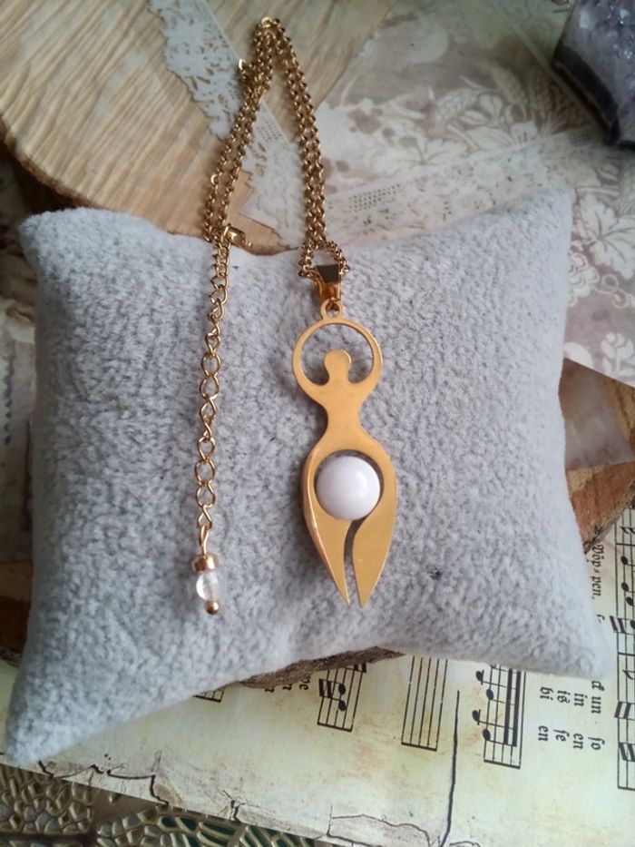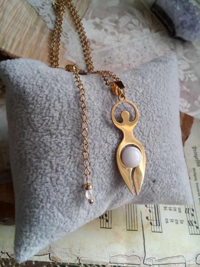Pendentif féminin sacré et pierre de jade blanc - photo numéro 2