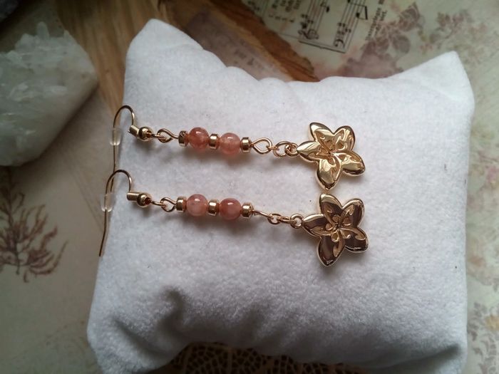 Boucles d'oreilles pierres du soleil et fleurs dorées - photo numéro 3