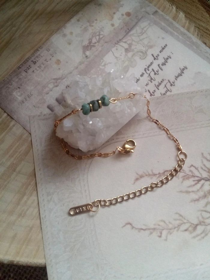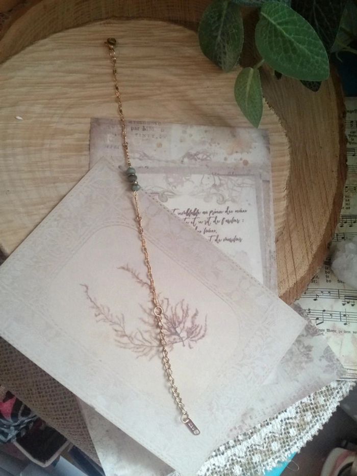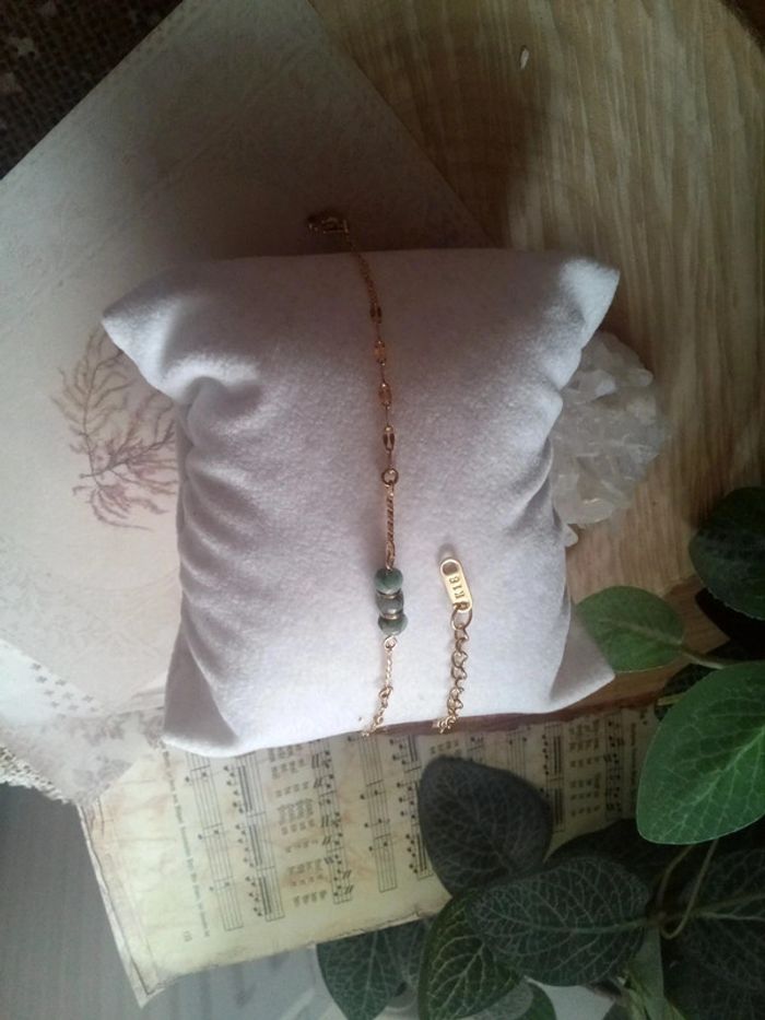 🌿🌿🌿💚🌿🌿🌿 Plaqué 18k Pierres naturelles semi précieuses Lithothérapie Réglable par chaînette d'extension Voir aussi talisman amulette bohème sorcellerie rituel santé guérison prière jade scarabé