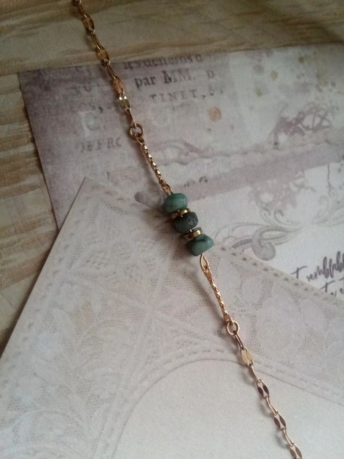 Bracelet fin avec petites pierres d'émeraude brute - photo numéro 1