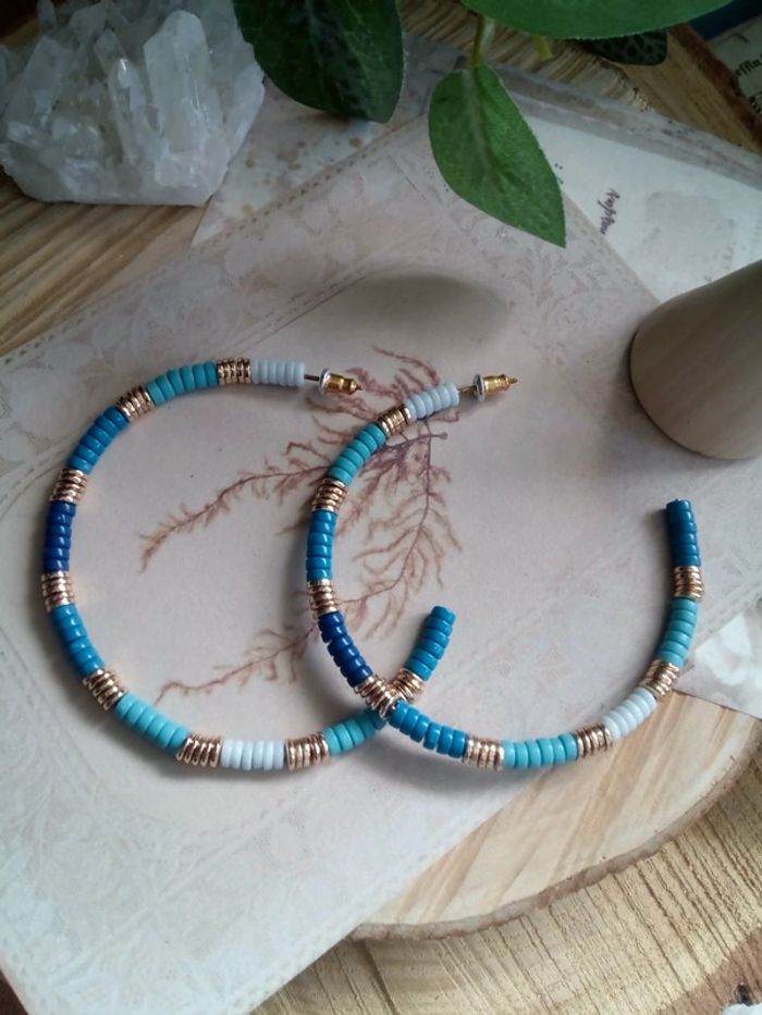 Jolies créoles bleu et or - photo numéro 1