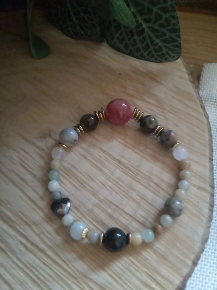 Jade rhodonite pierre de lune hématite améthyste amazonite Élastiqué Pièce unique Lithothérapie Voir aussi pierres naturelles semi précieuses d'améthyste jade labradorite mortelle Adèle oracle magie wicca bohème cadeau bola royaumes de feu TomTom chi amulette talisman huile essentielle