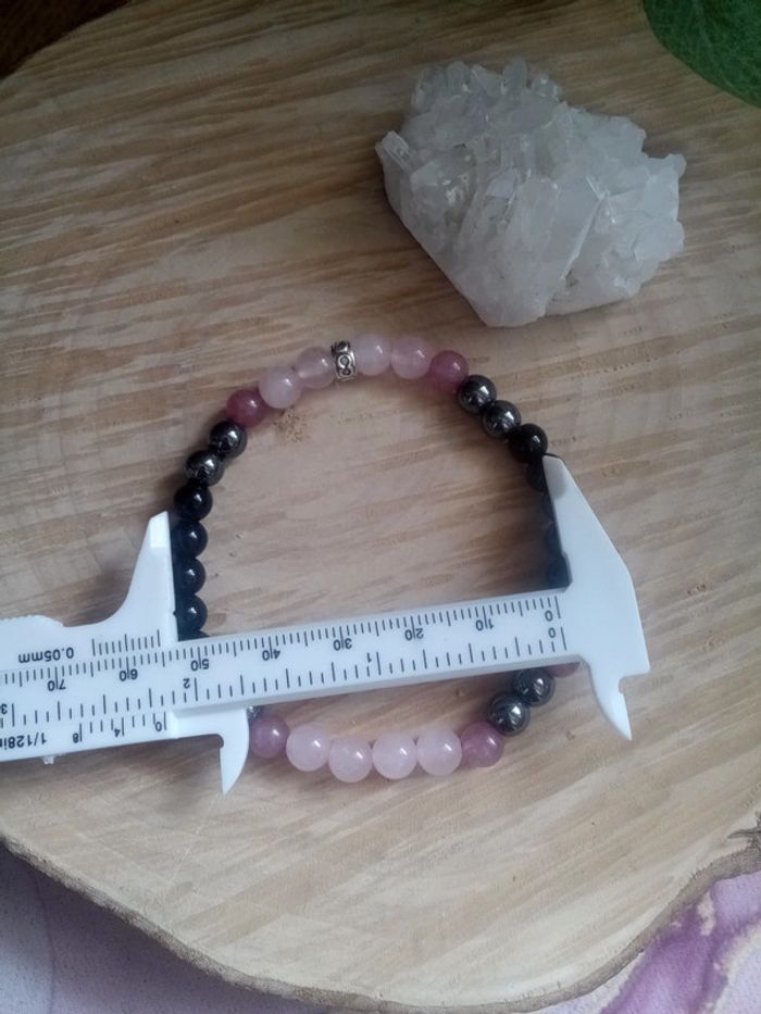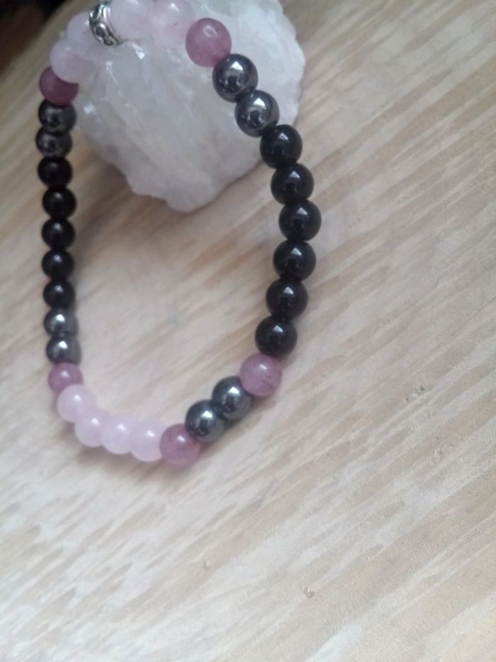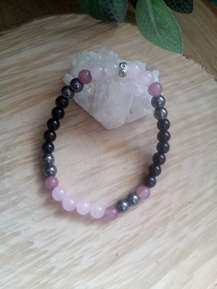 Réglable élastiqué Quartz rose hématite et agate noire Lithothérapie
