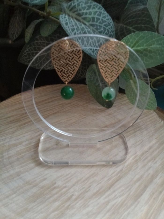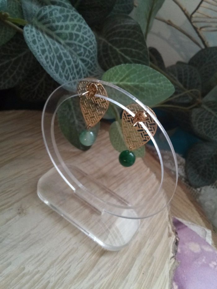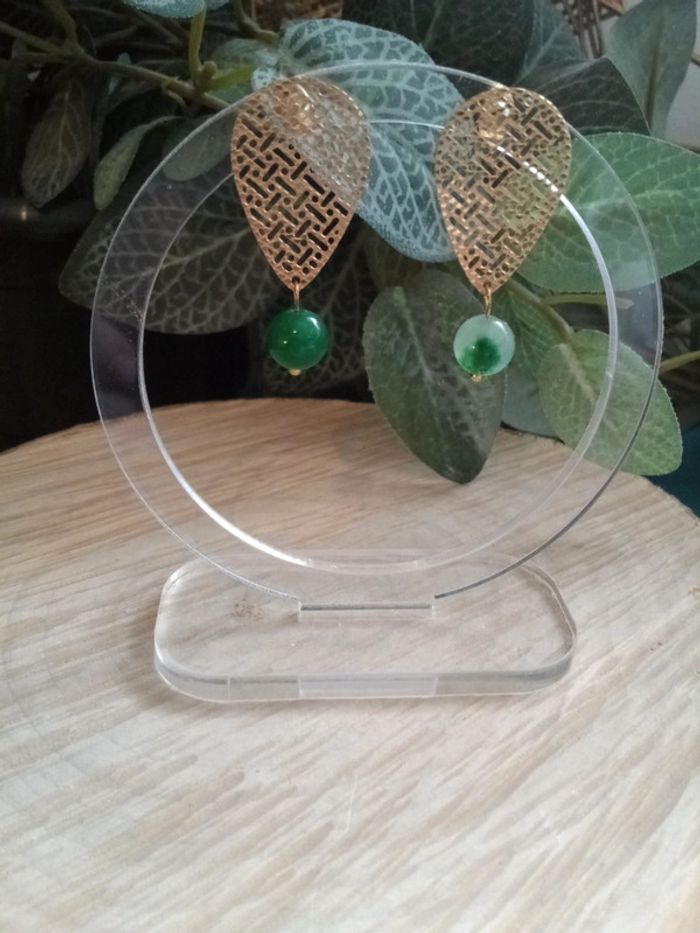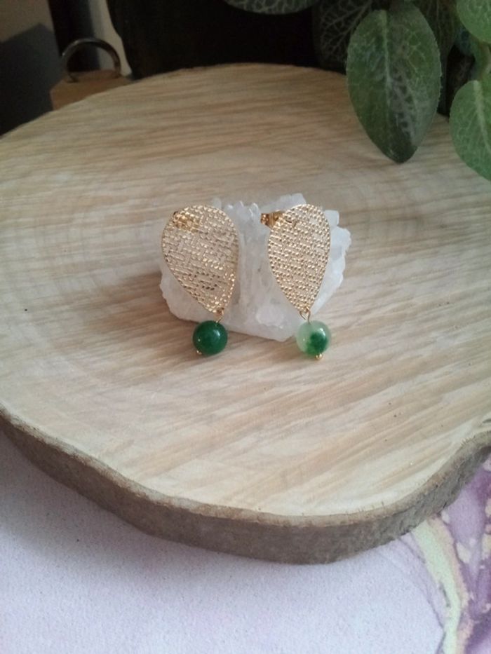 Boucles d'oreilles en  pierre de jade naturelle - photo numéro 1