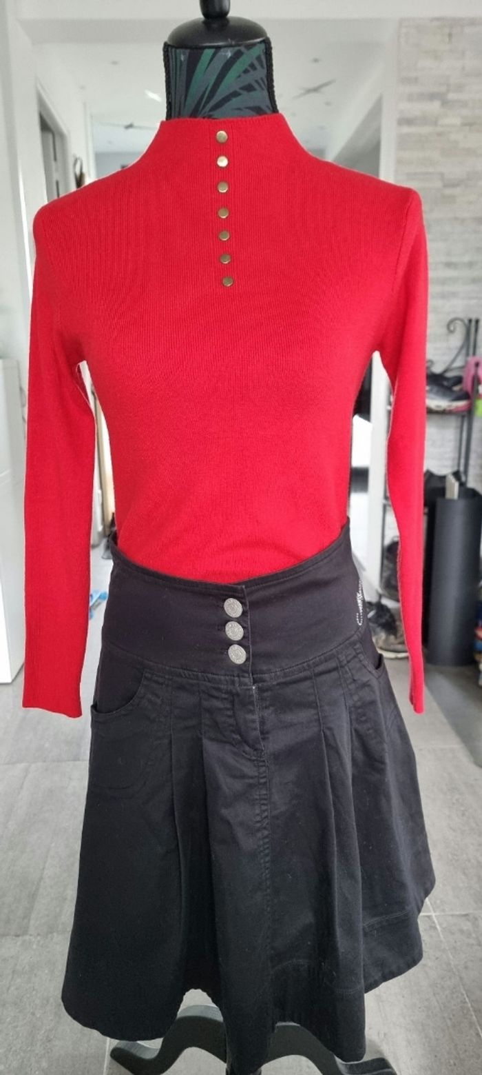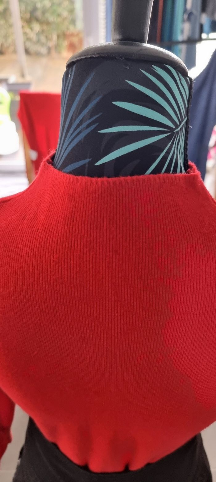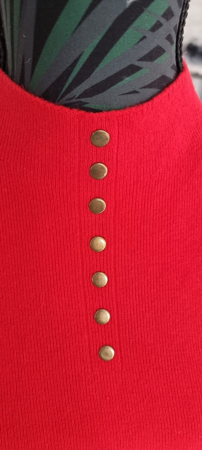 Pull à manches longues rouge femme. Col cheminée avec une série de boutons dorés. Maille légèrement côtelée et pull très doux. Pull femme, taille 34 taille grand maille très extensible. Excellent état A retirer sur Vannes et alentours ou envoi rapide et soigné. Prix 7 € D'autres accessoires, jouets et vêtements disponibles et autres tailles, dans le dressing. N'hésitez pas à me demander ☺️