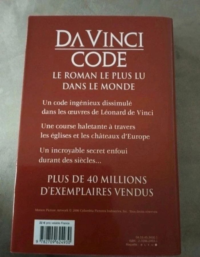 Da Vinci code De Dan Brown Couverture un peu plié. Jamais lu #ceheme1livre ⚖️Remises activées💸 🗂️ Dressing trier #📑 Vêtement 🌸 fille jusqu'à 10 ans, 🌀 garcon jusqu'à 4 ans, 👶 puériculture, 🧩🧸jouets, 📖 livres, 📽️ films,...