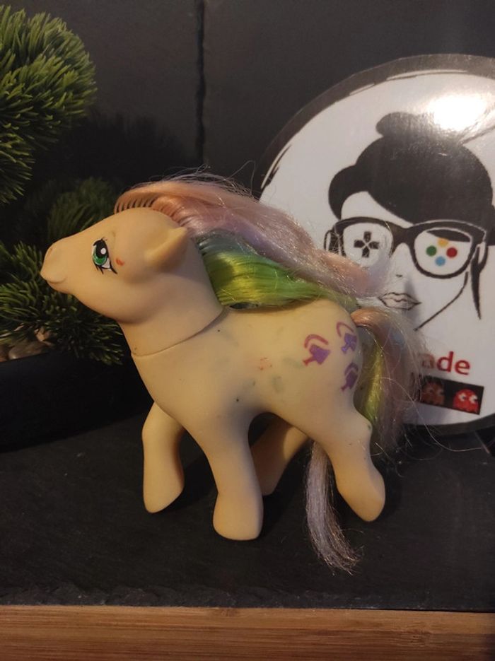 My little Pony g1 Trickles No country NC Il a un dessin sur le flanc ( anciennement du vernis lavable au il avait sur le flanc ) traces imprégnés donc gros traitement a faire Des points derrières les pattes arrières verts ont dirait du feutre Il manque un peu de peinture dans les yeux Crins rêches et des mèches sont plus courtes Impacts léger du plastique sous un sabot Je trouve que le poneys est légèrement orangé ça se voit pass sur les photos mais par moment je distingue des nuances de couleurs du plastique Vendu en l état gros travail pour tout enlever A nettoyer Marque Hasbro  Complément description:  L'objet est exactement comme sur les photos, vous achetez ce que vous voyez les photos font entièrement partie de la description.  Les crins sont de la longueur que vous voyez il peuvent potentiellement être écourtés  Petit nettoyage à prévoir  Pour plus d'informations vous pouvez me contacter directement je vous répondrais avec plaisir  Transport :  Les frais de port comprennent les frais du transporteur, le carton et le calage nécessaire à la bonne réception de votre colis.  Envoi sous format de colis  Envoi avec numéro de suivis systématique Achat multiple:  Plusieurs poneys peuvent être mis dans un même carton ( poids finit du colis 500g), contactez moi avant d'acheter afin de grouper les frais de port  Référencement :   My little pony g1 Mon petit poney g1 Jouet ancien / vintage / collection / occasion #geektradeponeyg1 #mylittlepony #monpetitponey #poney #hasbro #vintage #ancien #collection #collectionneur #cheval #poneyg1 #ponyg1 #jouetancien #mlp #jouetfille #fille #enfant #jouet #poupée #poneyàcoiffer  Mein kleines pony Mi pequeno poni