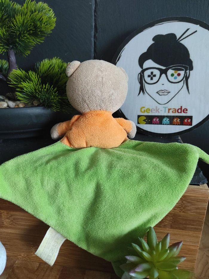 Doudou Ours Orange Vert Oiseau Feuille Nicotoy Plat Mouchoir  #geektradedoudou - photo numéro 1