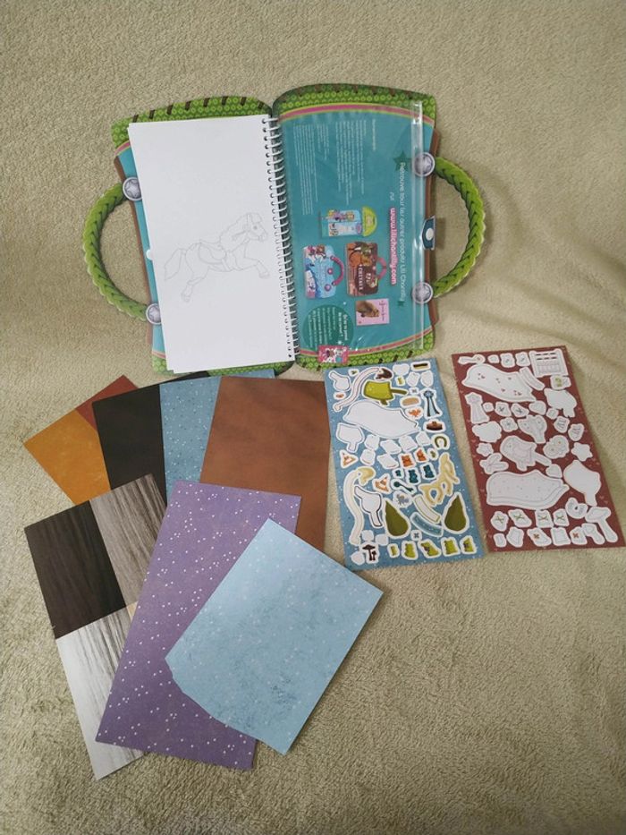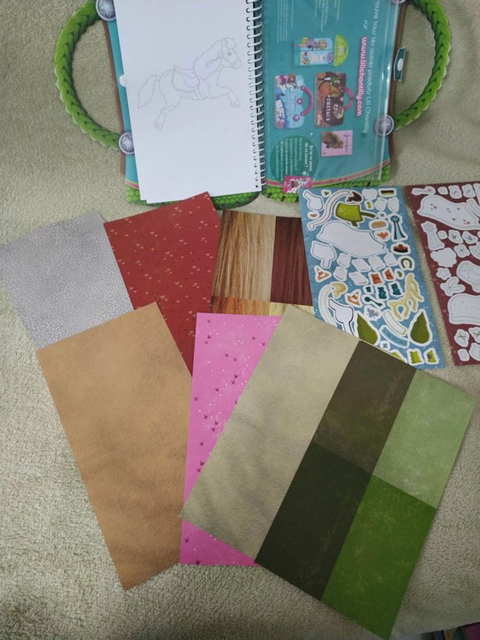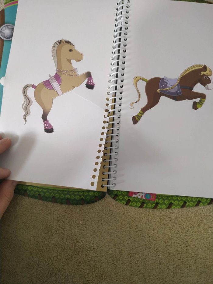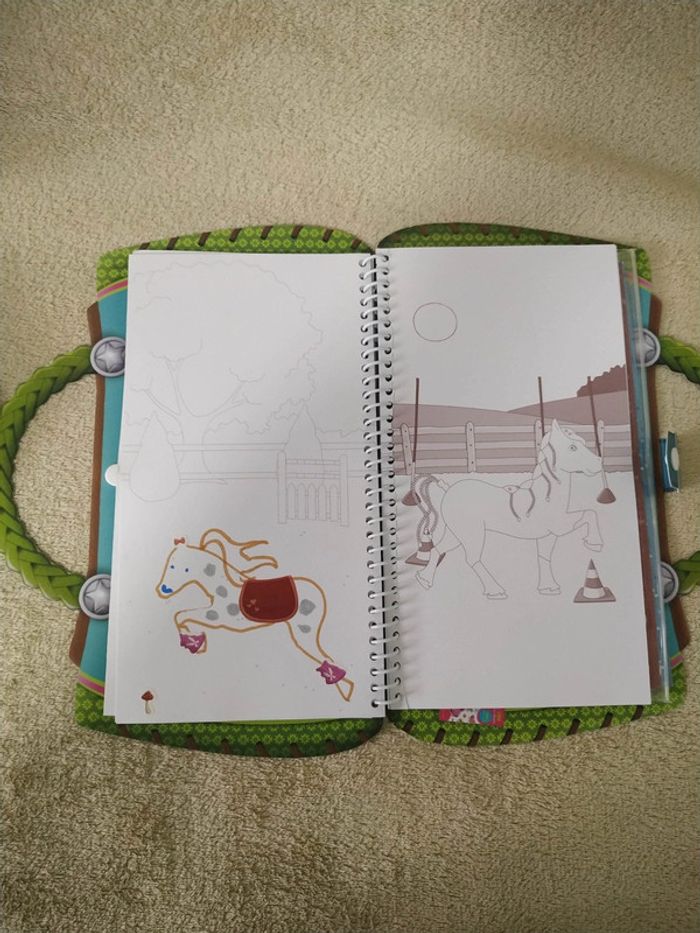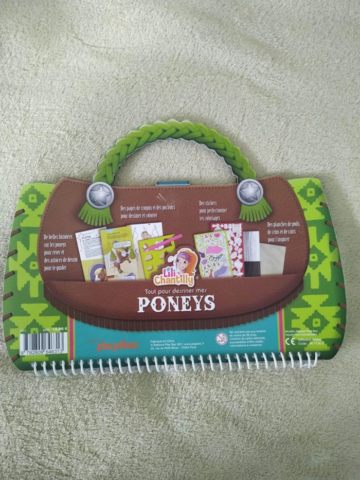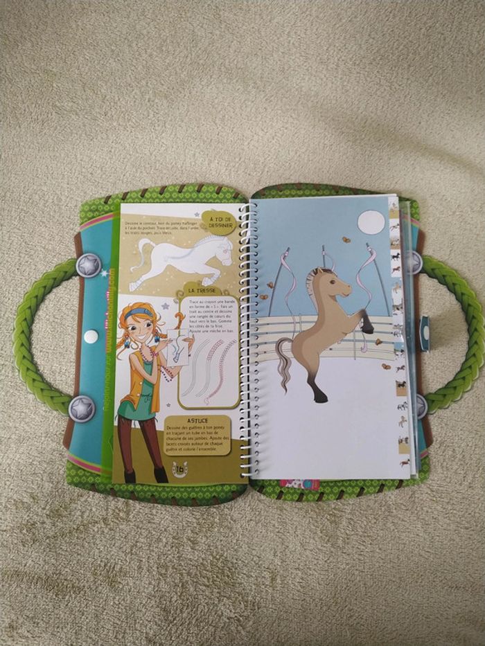 Carnet pour dessiner des chevaux, poneys. Presque complet, seulement quelques autocollants et feuilles utilisés (voir photos). Contient pochoirs, explications, feuilles à motifs recto/verso, autocollants. Maison non fumeur. Pensez à jeter oeil à mon dressing avant de commander (réduction si commande de plusieurs articles 😉). #marion_pel_livres