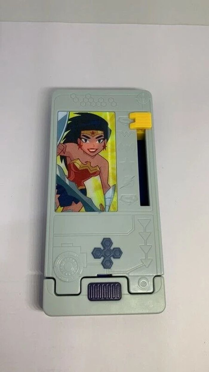 Jouet McDonalds Happy Meal Justice League 2018 contacts Case Batman Super Girl Mc Donald’s Happy Meal Toy Justice League Action Périscope devant avec Batman et Supergirl en 2018 Contacts Case - Porte carte Il faut sélectionner à droite quel super Héros on veut - et quand on ouvre la fiche du super héros apparaît Superman, Wonderwoman, Batman Super Girl Flash...