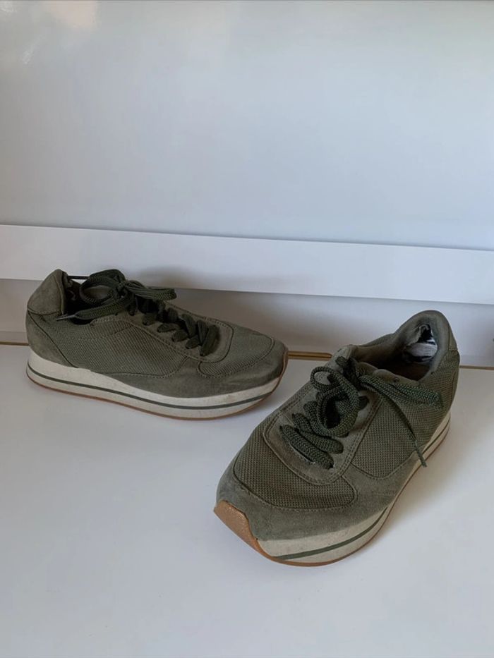 Chaussures Baskets Vert Kaki Zara P37 - photo numéro 2