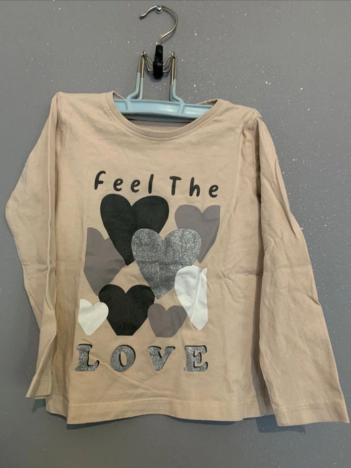 Haut Tshirt manches longues Feel the Love Primark T4-5 ans 110 cm - photo numéro 1