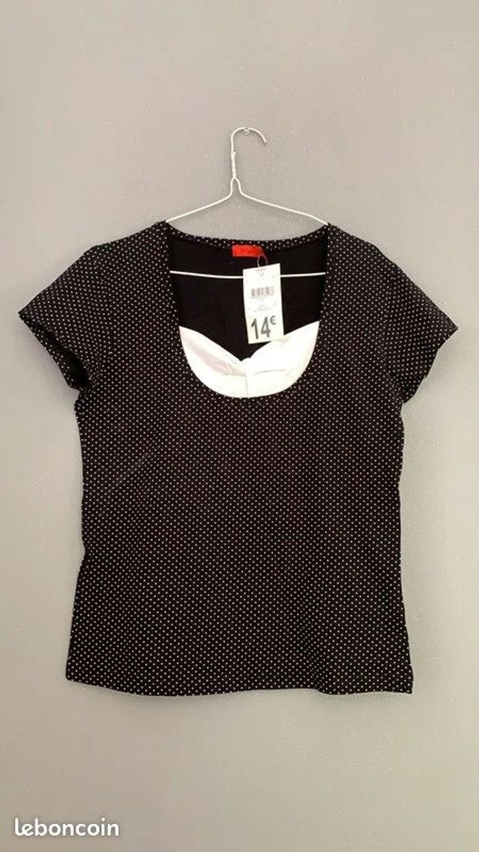 Haut T-shirt à pois TisSaia Leclerc Taille XXL (Taille 50/52 correspond au XXL pour TisSaia Leclerc : voir sur leur site) Neuf avec étiquette Prix d’achat 14 €