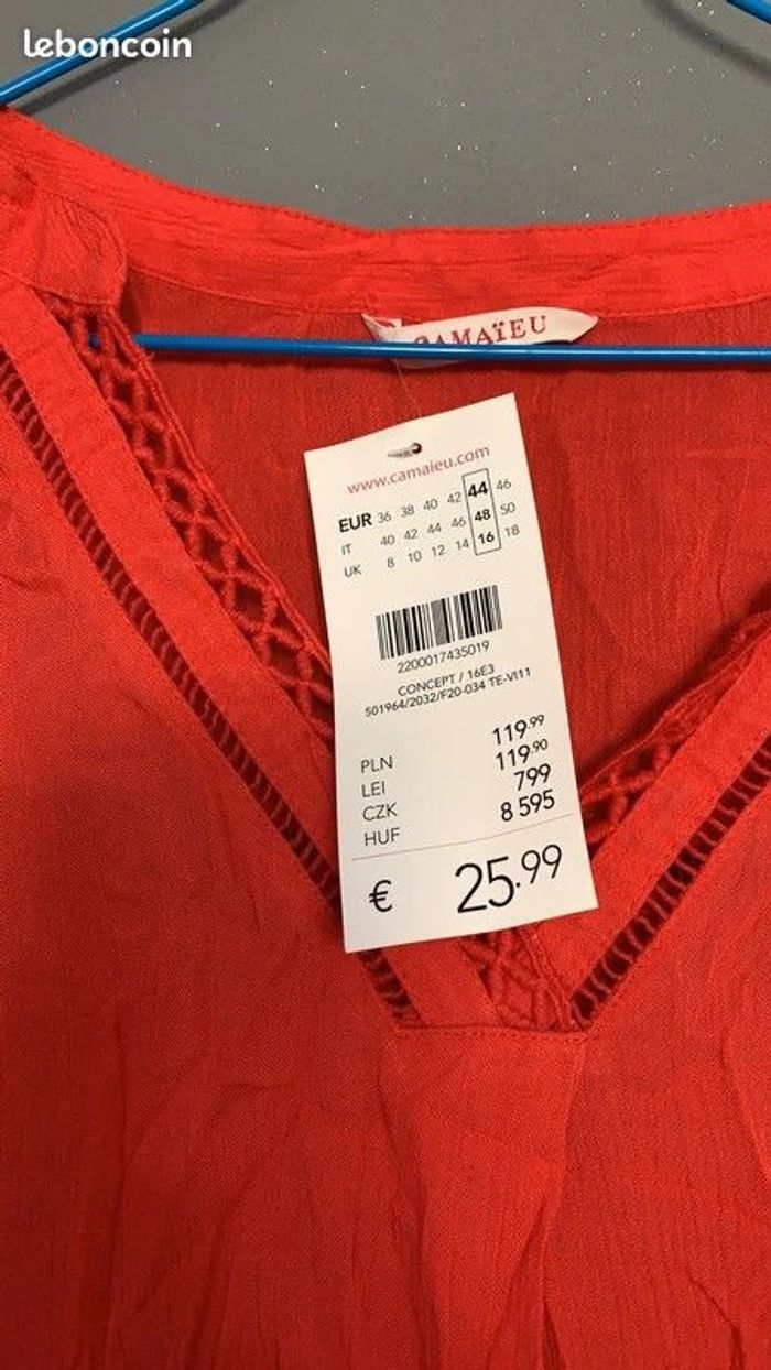 Haut t-shirt blouse rouge Camaïeu Taille 44 Neuf avec étiquette Prix d’achat 25,99 €
