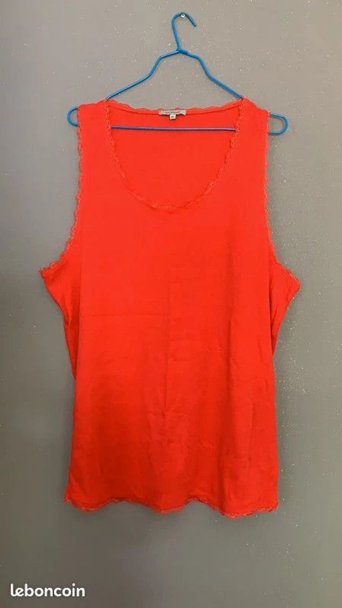 Haut t-shirt orange corail Tex Taille XXL Neuf Largeur aisselle à aisselle 55-56 cm mais élastique jusqua 60 cm Longueur du haut : 71 cm