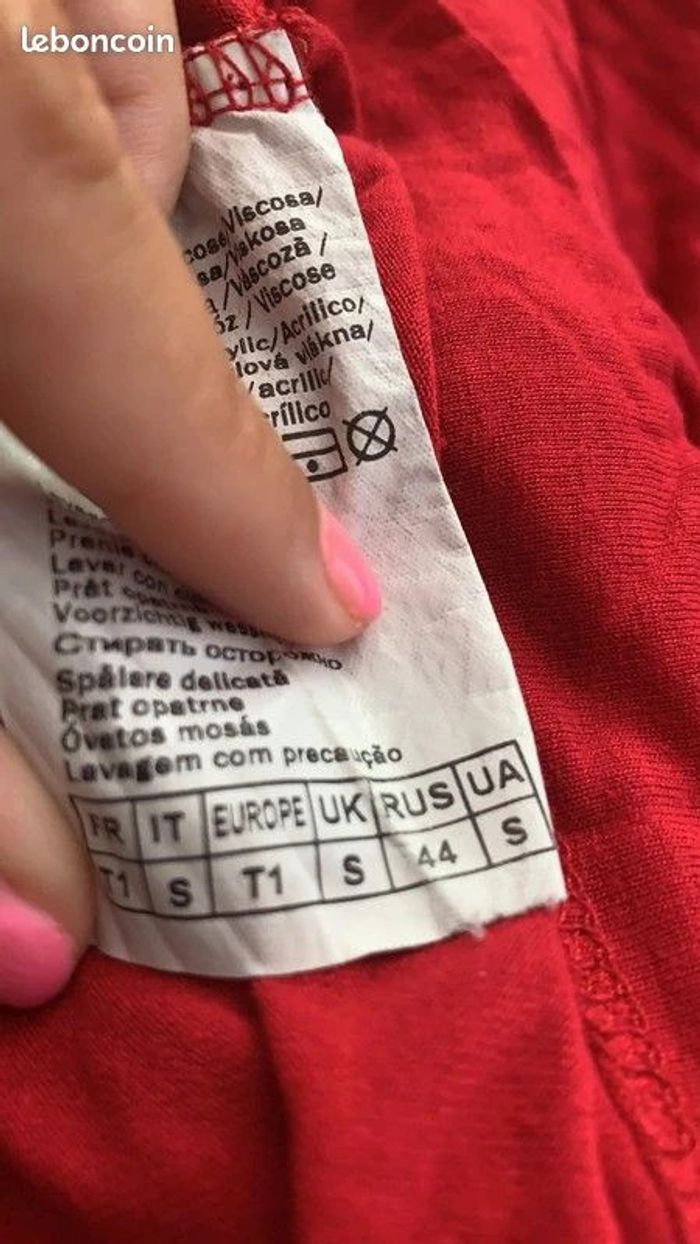 Haut manches longues Camaïeu Rouge Taille 1 Taille S Un tout petit trou en bas du t-shirt et sous les aisselles