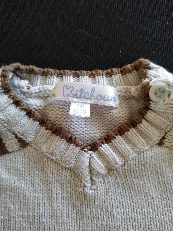 Pull sans manches en taille 3 mois / 60 cm. Ouverture boutons sur le col. Idéal pour mettre avec un petit polo ou chemise. Maison non fumeur. D'autres vêtements disponibles, n'hésitez pas à jeter un œil dans mon dressing (réduction si commande de plusieurs articles). #marion_pel_3mois