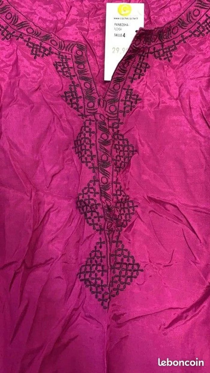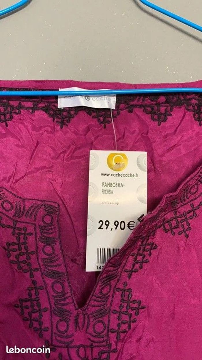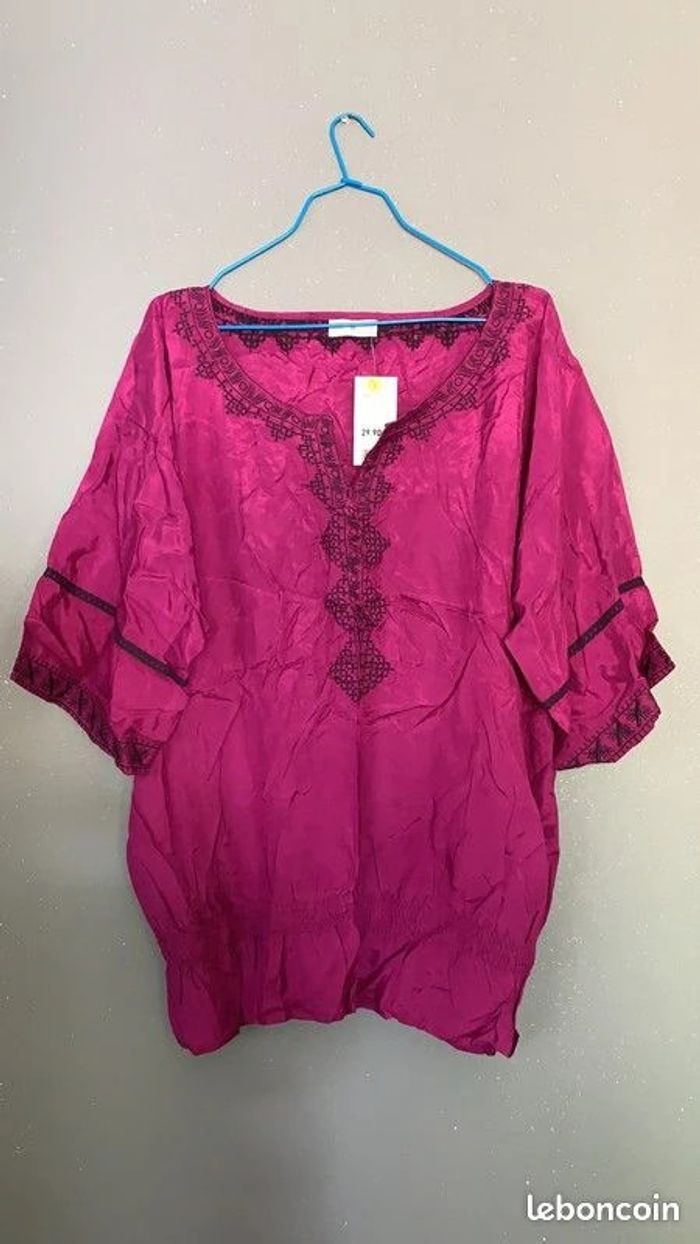 Haut blouse col tunisien oriental ou indien Rose fushia foncé Cache-Cache Taille XL Neuf avec étiquette Prix d’achat 29,90 €