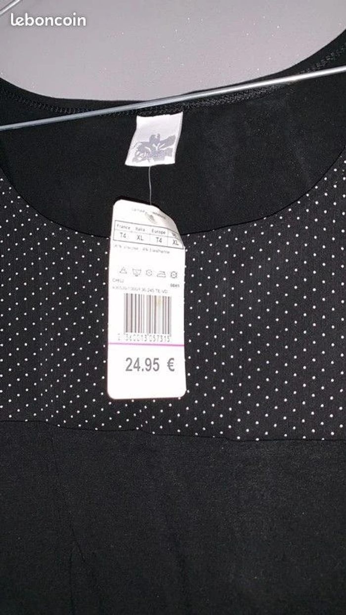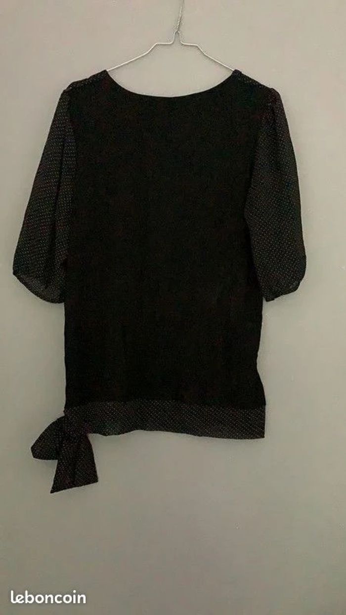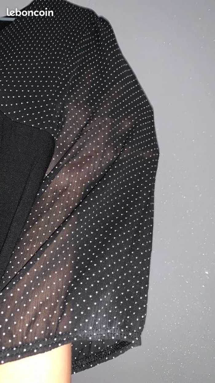 Haut manche 3/4 Camaïeu Taille 4/XL Neuf avec étiquette Haut manche 3/4 à pois Petit nœud lien à nouer en bas du haut Manches transparentes, le reste non Camaïeu Taille 4/XL Neuf avec étiquette Prix d’achat 24,95 €