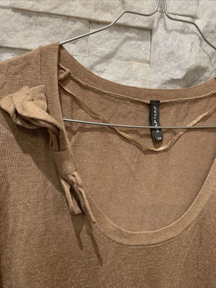 Haut Tshirt camel noeud Naf Naf TXS - photo numéro 3