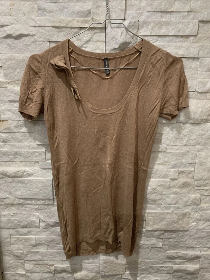 Haut Tshirt camel noeud Naf Naf TXS - photo numéro 1