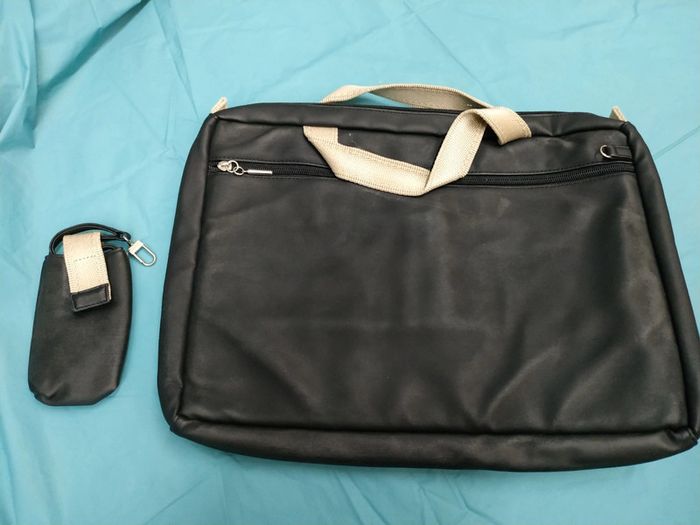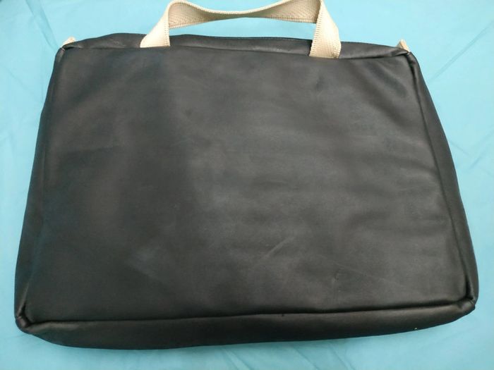 Cartable noir avec pochette pouvant s'accrocher sur le sac. Un peu rembouré, idéal pour transporter un ordinateur portable. Taille cartable : 26 x 36,5 x 6 cm Taille pochette : 12 x 8 cm Maison non fumeur. #marion_pel_femme #marion_pel_homme