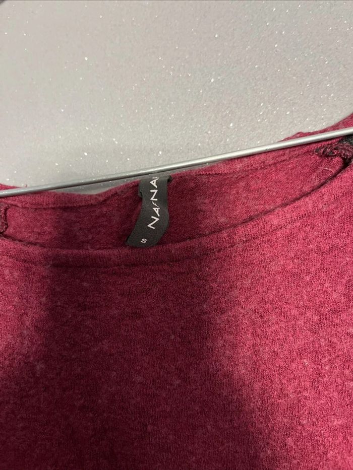 Haut Pull manches 3/4 Dentelle Bordeaux Naf Naf TS - photo numéro 5