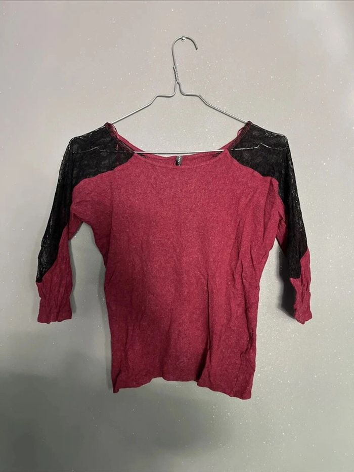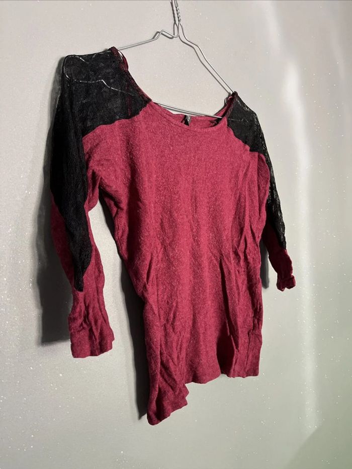 Haut Pull manches 3/4 Dentelle Bordeaux Naf Naf TS - photo numéro 1