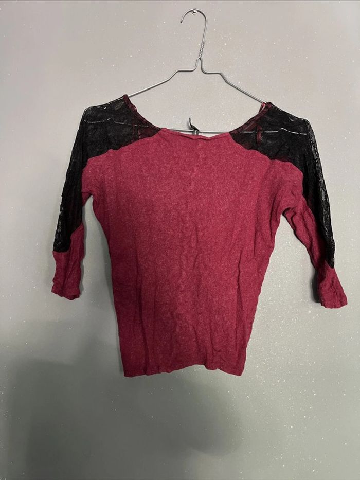 Haut Pull manches 3/4 Dentelle Bordeaux Naf Naf TS - photo numéro 3