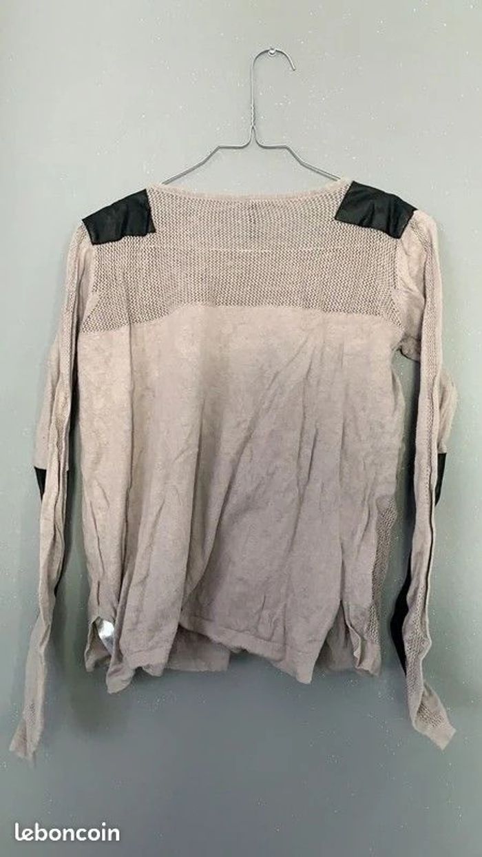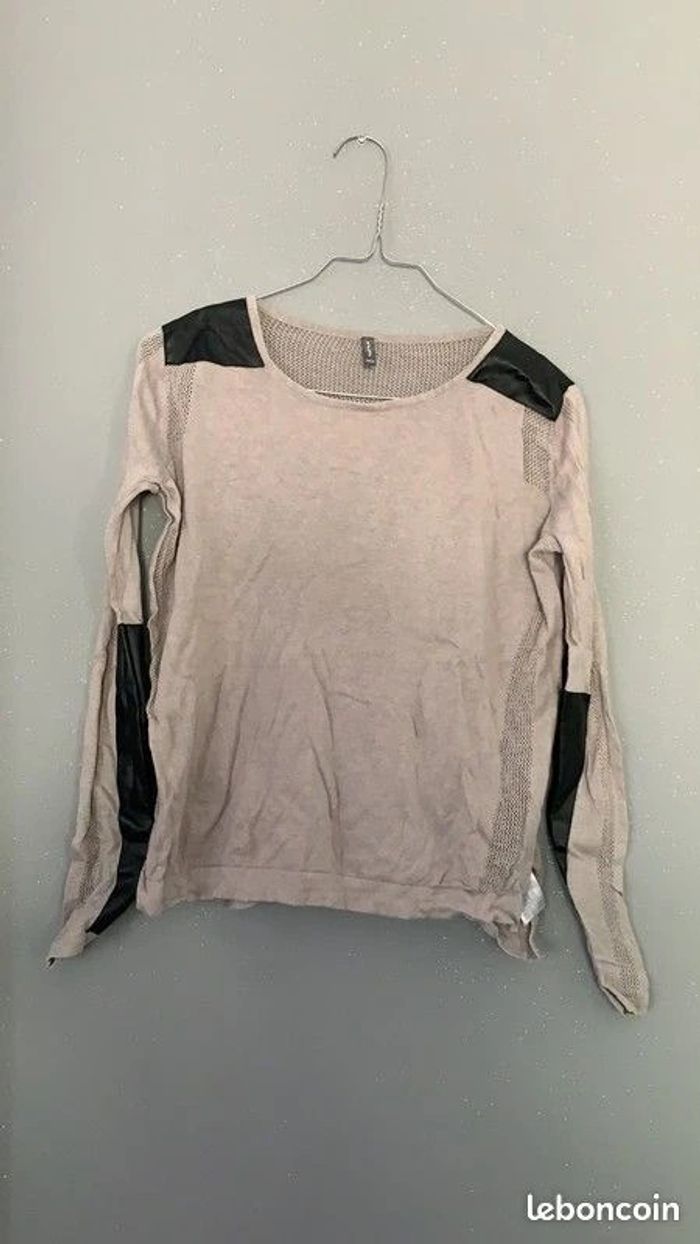 Haut manches longues Pull Naf Naf Style simili cuir sur les épaules et derrière manches Taille XS/S